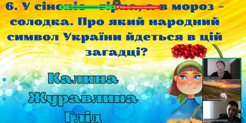 Завершився урок пізнавальною грою-вікториною «Моя Україна», під час якої учні продемонстрували свої знання з історії, культури та державних символів України, проявили активність, кмітливість і щиру зацікавленість.