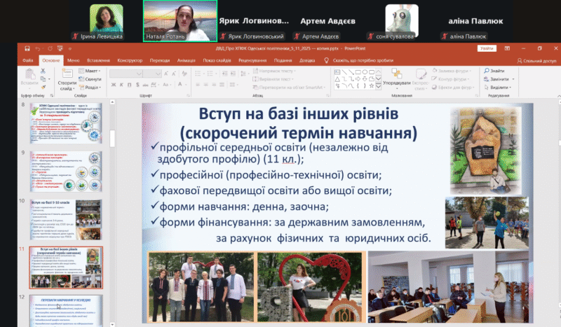 13 листопада відбулася онлайн-зустріч учнів 9–11-х класів Олешківського ліцею №2 з представниками відокремленого структурного підрозділу «Херсонський політехнічний коледж» Національного університету «Одеська політехніка».