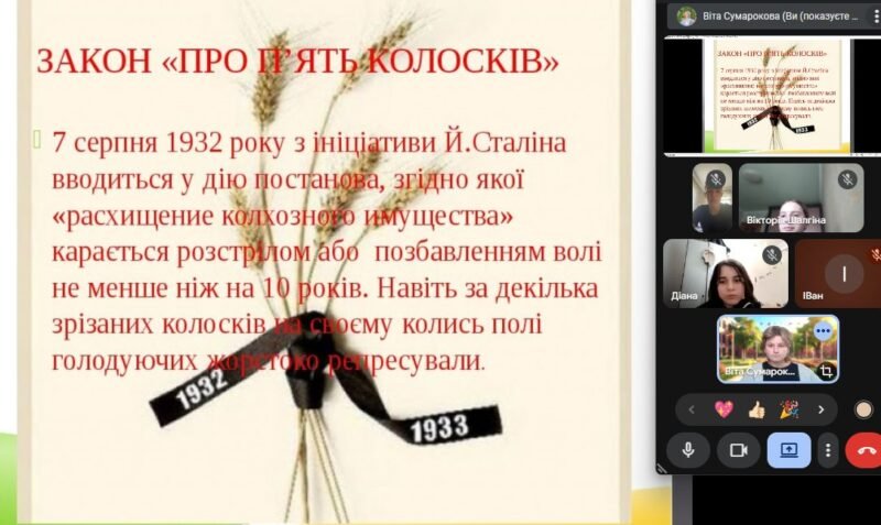 Під час заходу учні дізналися про поняття «геноцид», «штучний Голодомор», «розкуркулення», а також про партійних діячів, причетних до організації цієї трагедії.