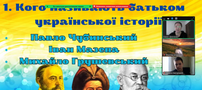 Завершився урок пізнавальною грою-вікториною «Моя Україна», під час якої учні продемонстрували свої знання з історії, культури та державних символів України, проявили активність, кмітливість і щиру зацікавленість.