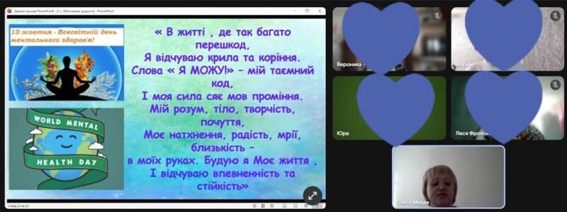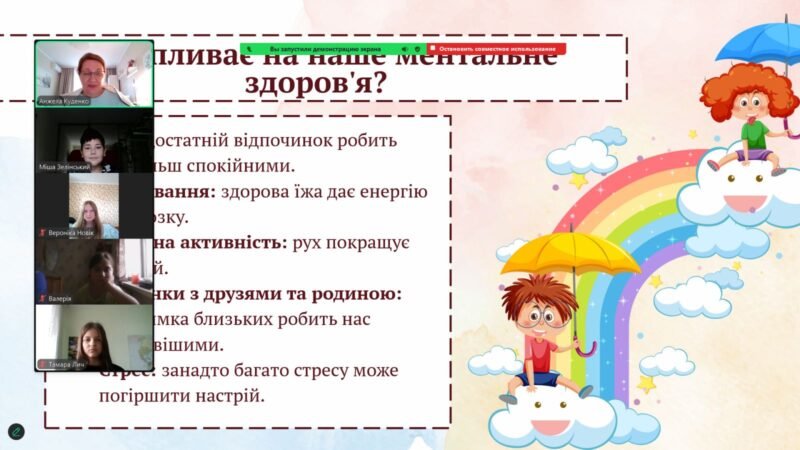 Під час години спілкування учні ознайомилися з поняттями ментальне (психічне) здоров’я, щастя та щаслива людина. Разом обговорили, що робить людину щасливою, як емоційний стан впливає на здоров’я, навчання і спілкування.