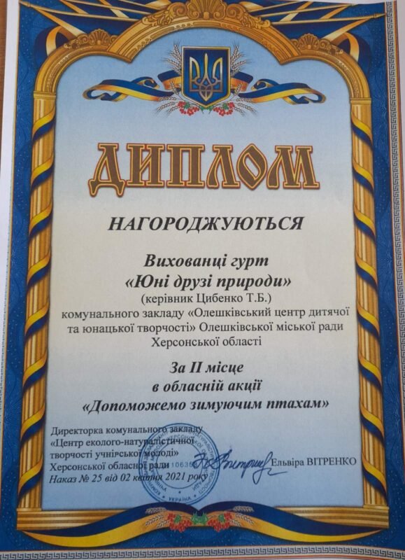Тож вітаємо учнів нашого закладу та керівника гуртка ЦДЮТ “Юні друзі природи” Цибенко Тетяну Борисівну із заслуженою перемогою.