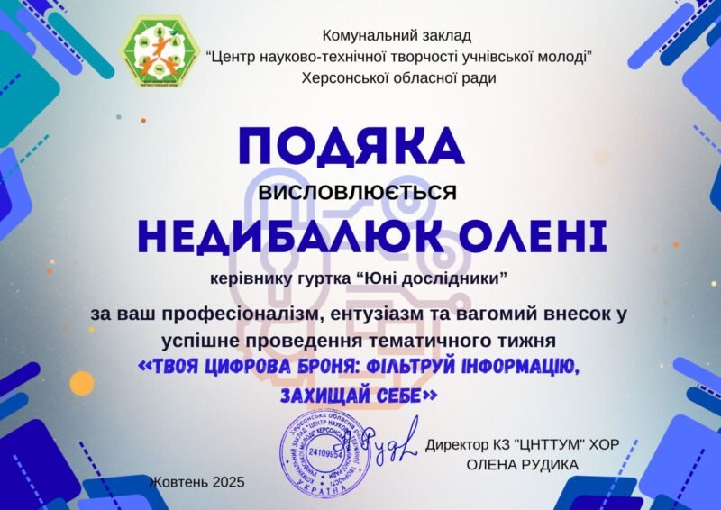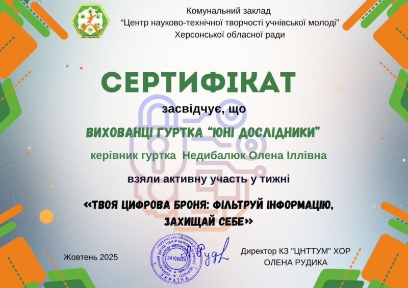 Учні Олешківського ліцею №2 Олешківської міської ради, які є вихованцями гуртка «Юні дослідники» Комунального закладу «Центр науково-технічної творчості учнівської молоді» Херсонської обласної ради (керівник – Недибалюк Олена), вкотре довели, що цікавість, допитливість і бажання вчитися — це справжня сила! 💪