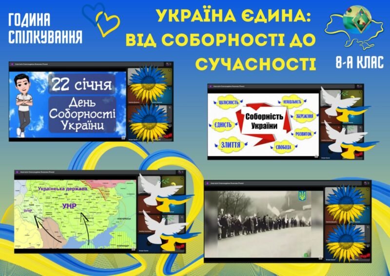 Під час години спілкування учні ознайомилися з історичними передумовами та значенням Дня Соборності, переглянули тематичне відео, обговорили поняття соборності, єдності та незалежності. Особливу увагу було приділено ролі єдності українського народу в минулому й сьогоденні, а також відповідальності кожного громадянина за майбутнє країни.