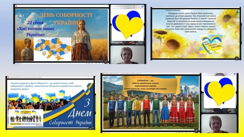 Під час заходу учні ознайомилися з історією виникнення Дня Соборності, дізналися про події 22 січня 1919 року, коли було проголошено Акт Злуки Української Народної Республіки та Західноукраїнської Народної Республіки. Учням було розкрито поняття «соборність», його значення для сучасного життя України. Переглянули тематичну презентацію, обговорили символіку єдності українських земель.