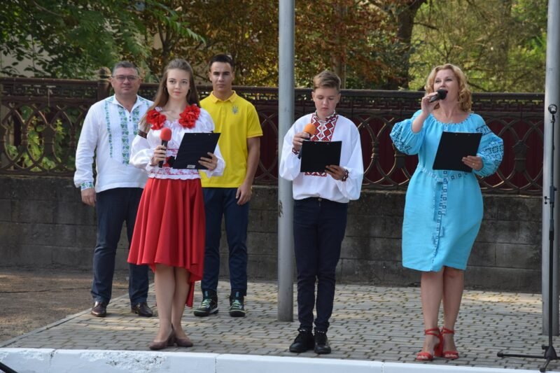 Лунає Державний Гімн України. Ведучі концерту з центру дитячої та юнацької творчості запрошують до привітального слова очільника громади. Євген Рищук нагадав, що наш прапор ми бачимо щодня у поєднанні природних кольорів – синього неба і жовтого поля. «Цей символізм є втіленням національної єдності, честі та гідності, традицій державотворення, історії та сьогодення, – зазначив він. – Тому бажаю усім, щоб наш прапор завжди майорів під мирним небом, а ми – жили у незалежній, самодостатній європейській Україні».