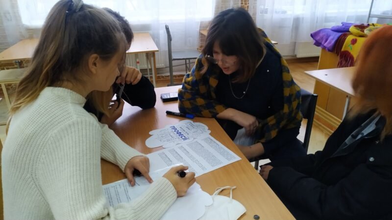 На уроці учні дізналися про різноманітні професії різних сфер діяльності. Розібратися учням допомогли не лише вчителі, але й цікаві завдання. Кожна група отримала аркуш з інформацією і за вказівкою педагогів складали хмаринки слів за різними темами, пов’язаними з професійями.
