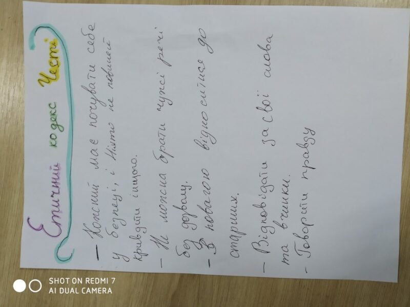 В 9-В класі відбулась година спілкування на тему ” Доброчесність. Справедливість. Корупція.” Діти об`єднались у групи та працювали над груповими темами. Створили “Етичний кодекс честі”, визначили означення поняття “Справедливість”, “Доброчесність”, ” Корупція”. Також були змодельовані ситуації, які взяті з літературних творів, і діти з задоволенням відтворили їх, та визначили з кожної ситуації позитивну сторону.